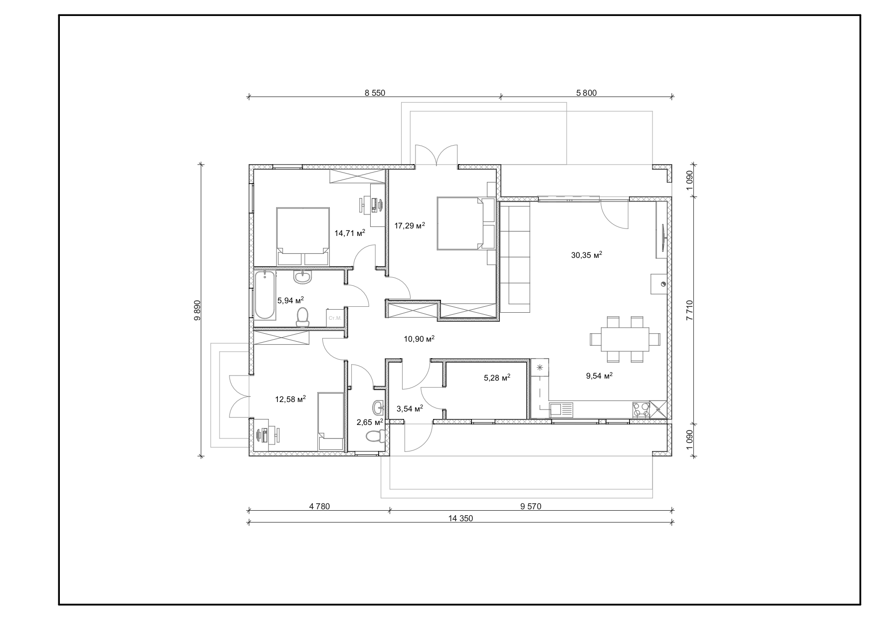 З вітальні є вихід на простору відкриту терасу, де можна облаштувати зону відпочинку або літню їдальню. Продумане планування забезпечує чіткий поділ на приватну та спільну зони. Використання SIP-технологій гарантує швидкий монтаж, довговічність і високу теплоізоляцію. Проєкт ідеально підходить для родини, яка цінує сучасний стиль, практичність і затишок.